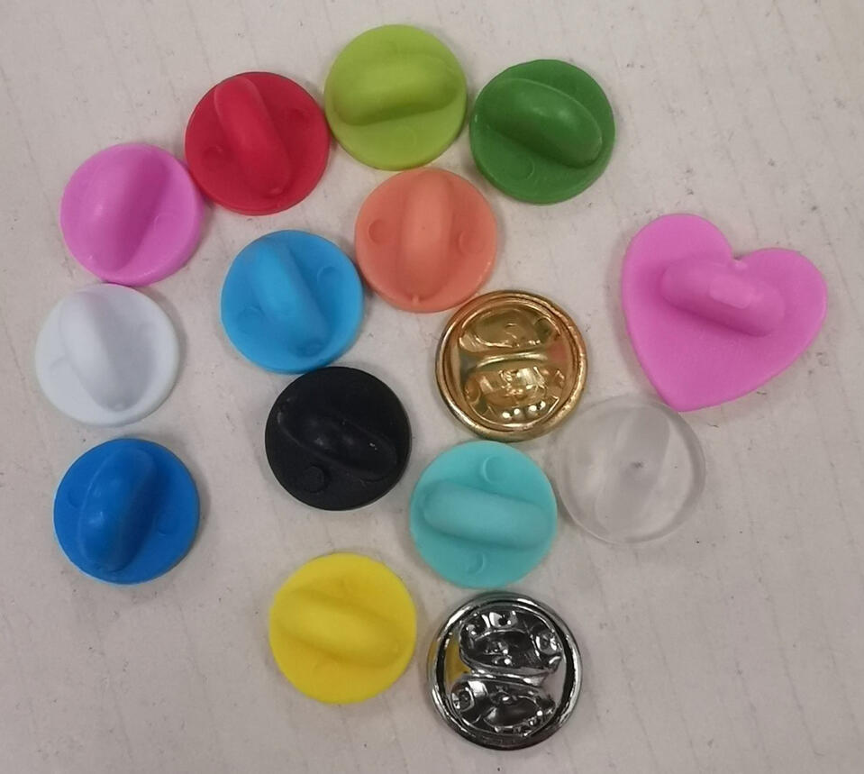 I have a few colors of rubber backings that I can offer for my pins!! I do not suggest getting the metal backings because they are not as sturdy and you pin might get lost!!here are the colors you can choose from for your backings: